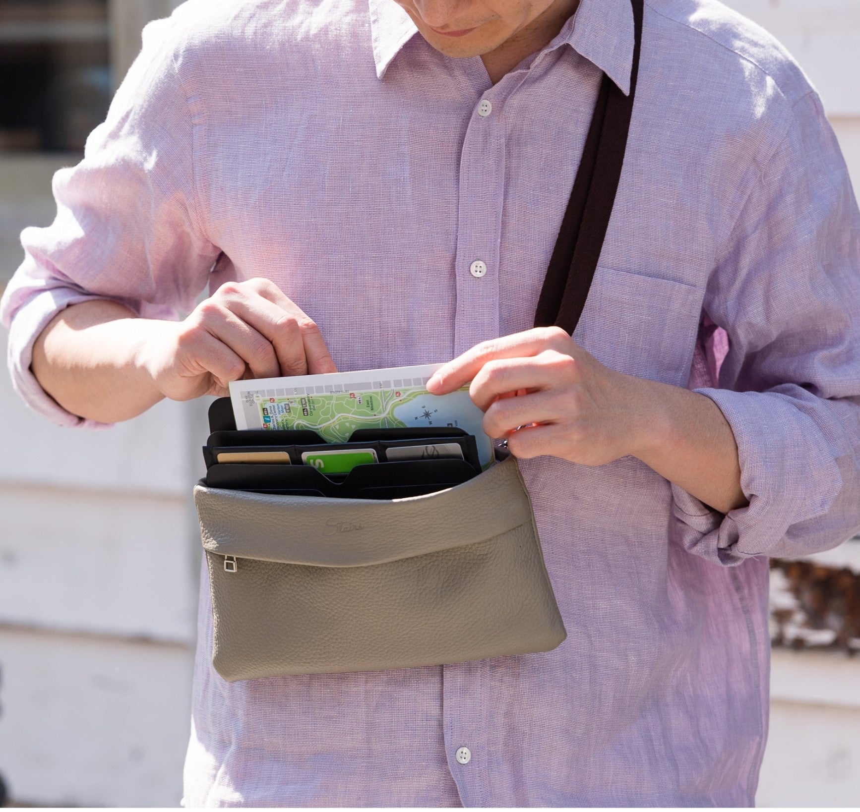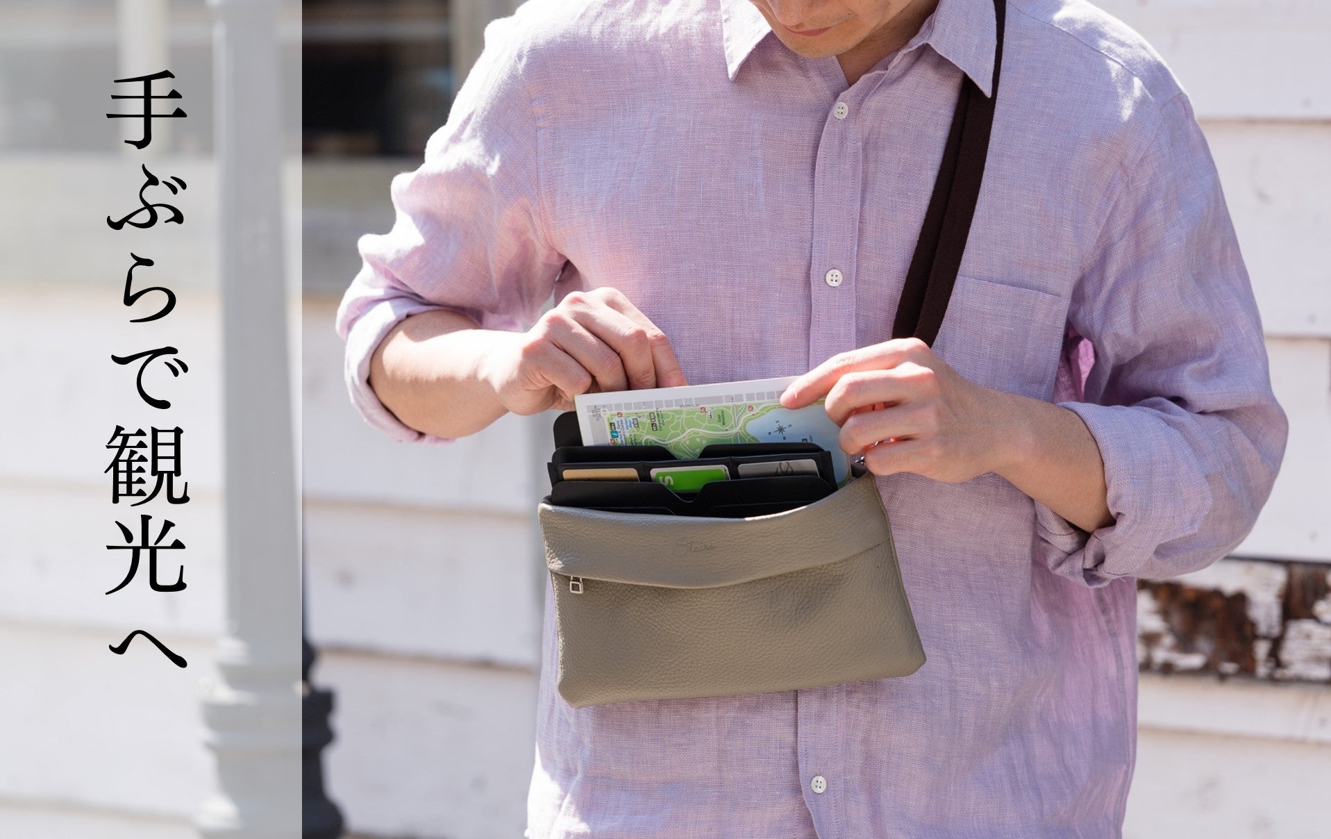 外付けポケットを外して、付属のショルダーベルトを付けると、サコッシュに大変身!
