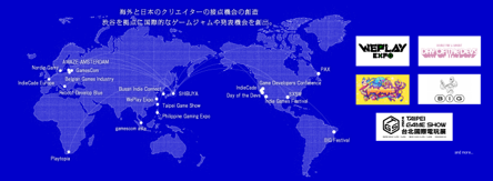 海外パートナーや団体、欧州やアジアなどで行われるゲームイベントと提携し、日本の優秀なインディーゲームクリエイターを集めて出展や訪問を行い、関係性を強化や交流機会を生み出す。