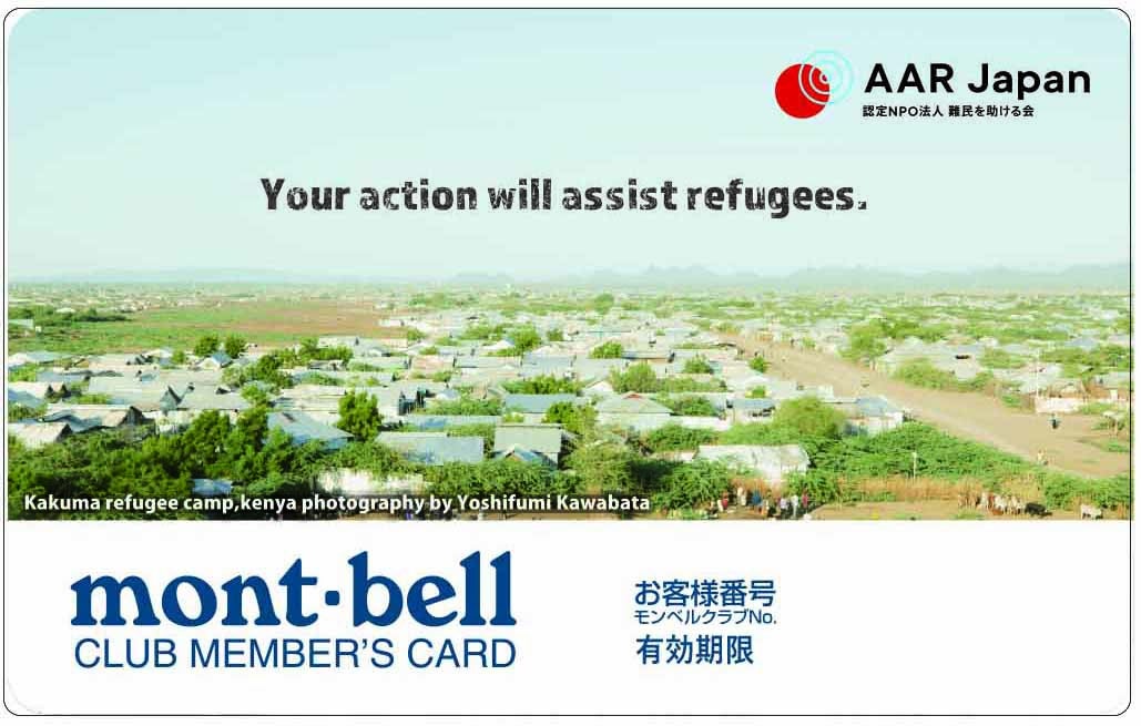 モンベルクラブ・サポートカードとは、自然保護や国際協力をはじめとする非営利団体を応援するために作られたカードです。同社の商品をご購入いただくごとに、通常のモンベルクラブ会員(年会費1,500円)特典に加えて、お買い上げ金額(税抜)の3%分のポイントが当会に寄付され、難民支援活動に活用されます。