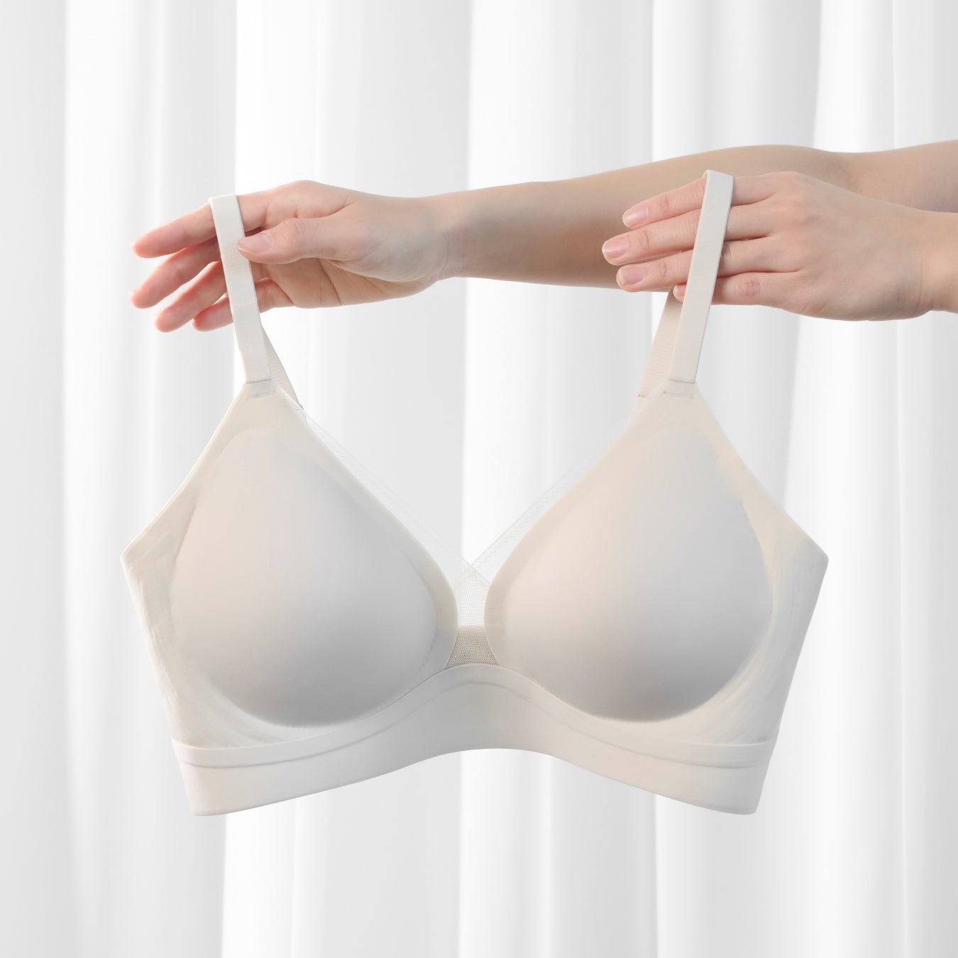 ジェラートのように柔らかく、もっちりとした肌触りのブラジャー。ワイヤーの代わりにシリコンの3Dムービングゲル入りパッドがバストをしっかり支えます。柔らかく楽な着け心地でありながら、脇高設計で安定したフィット感と補正効果を実現。アウターにラインがひびきにくいなめらかな仕上げです。
