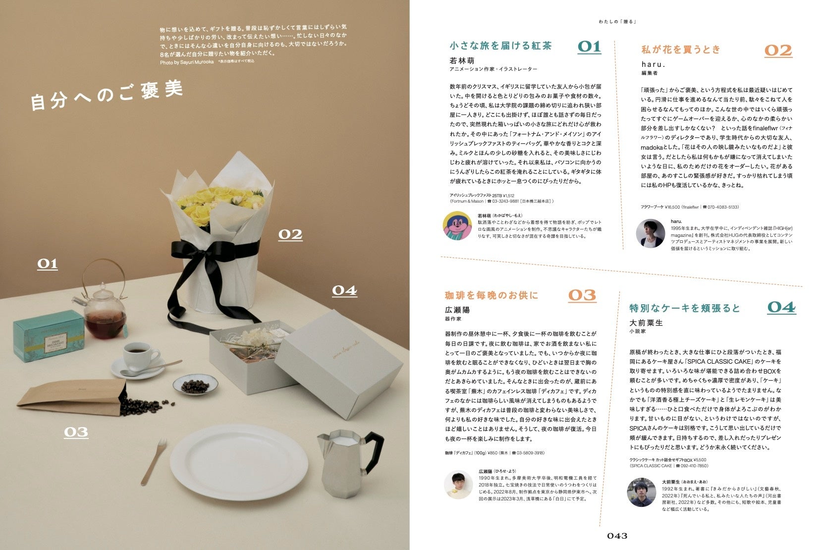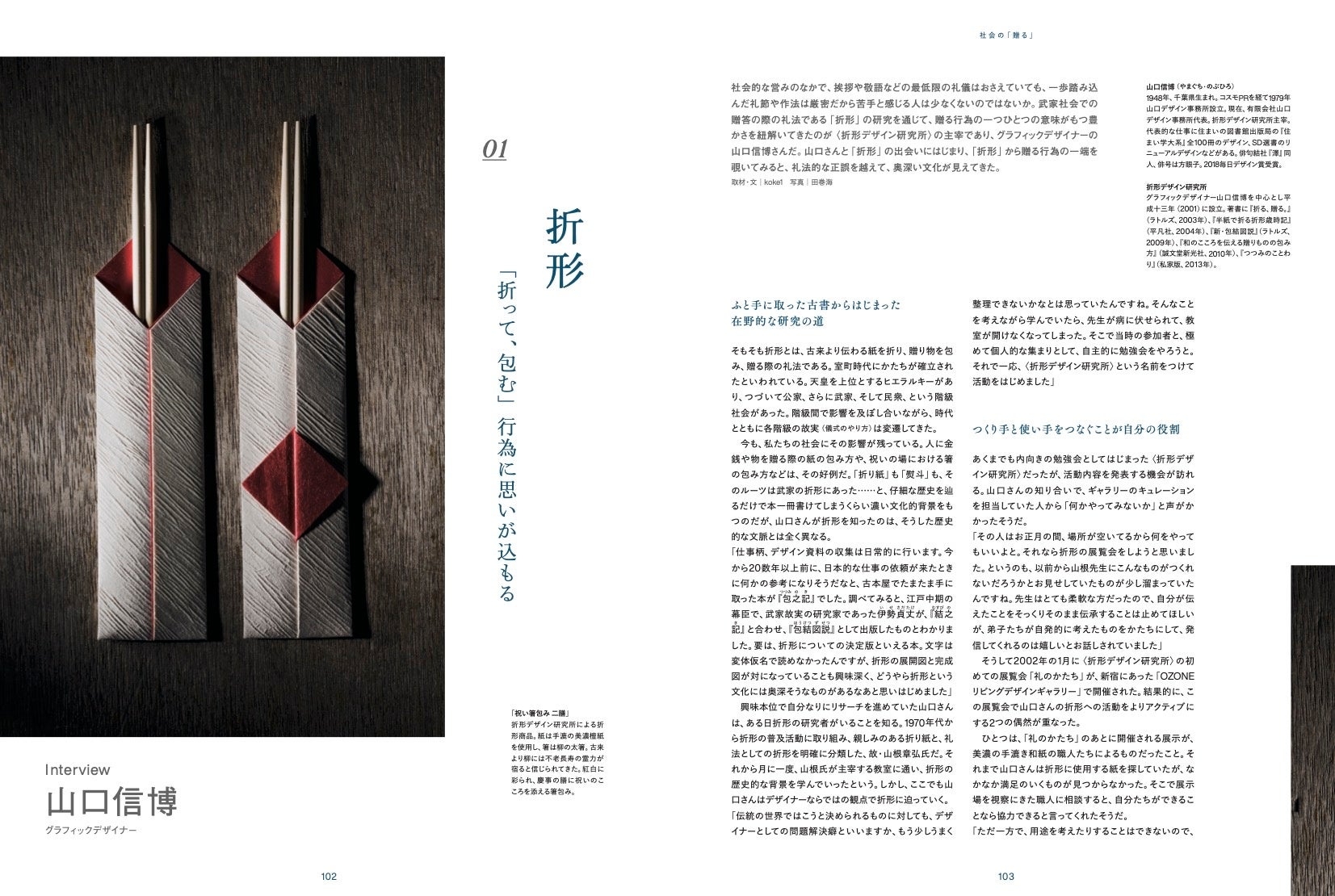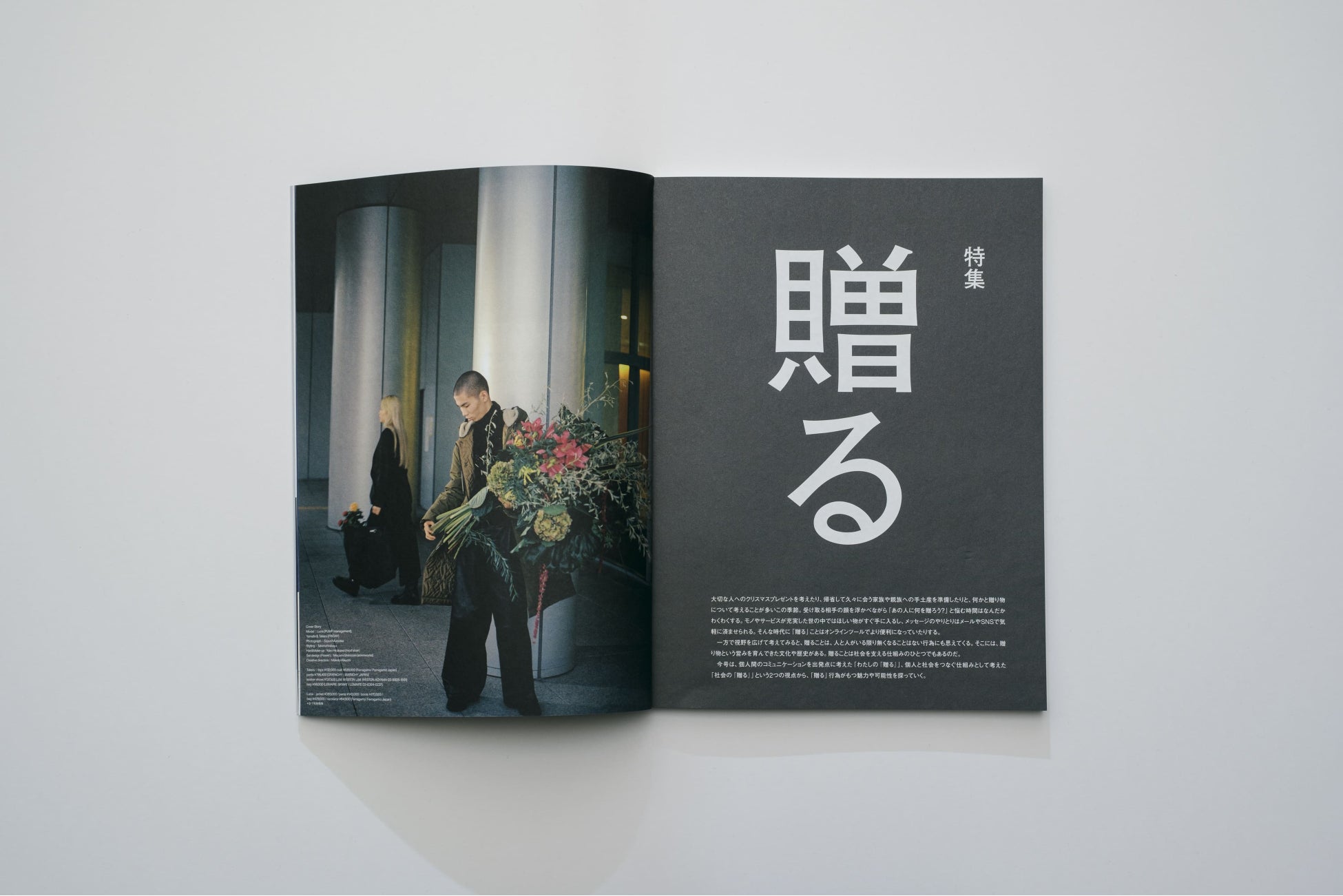 今号は、個人間のコミュニケーションを出発点に考えた「わたしの『贈る』」、個人と社会をつなぐ仕組みとして考えた「社会の『贈る』」という2つの視点から、「贈る」行為がもつ魅力や可能性を探っていく。
