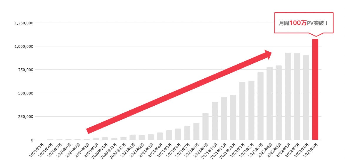 そしてこのたび、ローンチ以降、過去最高となる月間100万ページビューを突破いたしました。(2022年9月末時点)