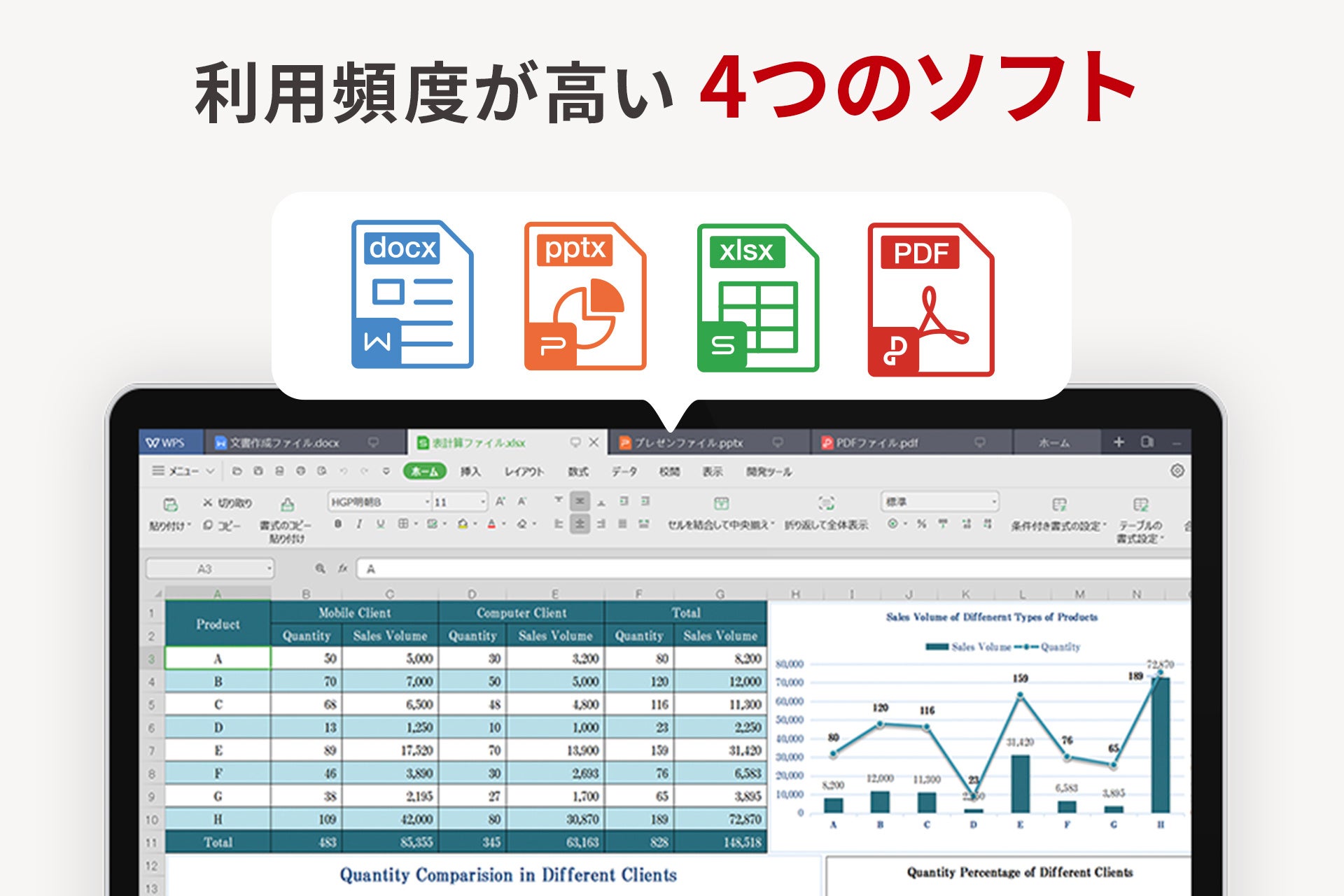 2020年6月にリリースしたWPS Officeのメジャーアップデート版「WPS Office 2」は、文書作成・スライド作成・表計算・PDF閲覧機能を搭載したオフィスソフトです。Microsoft 2007以降の保存形式に対応し、Microsoft Officeとの高い互換性と操作性に加え、優れたコストパフォーマンスで大きな支持を得ています。