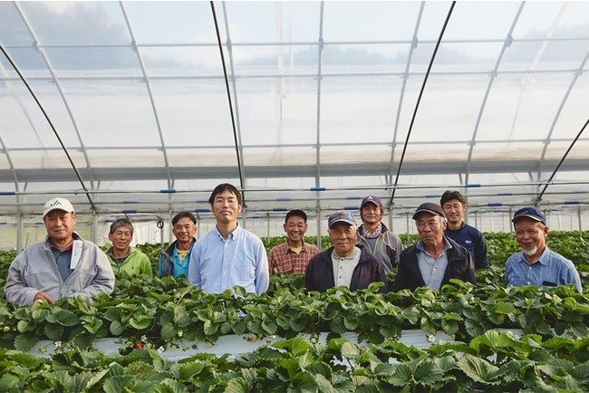 奈良県明日香村では20軒のいちご生産者がいます。年齢は70代から20代までと幅広いですが、生産者同士のつながりが非常に強く、経験や知識、また栽培技術も共有し、切磋琢磨しながら県内でも最高品質のいちごを出荷しています。粒が大きくツヤのある鮮やかな赤色の果皮に、果肉も赤みを帯びている〈あすかルビー〉は、果汁も多いためジューシーで糖度が高く程よい酸味があるのが特徴です。奈良県生まれなので「あすか」、そして光沢のある赤色がまるで宝石の「ルビー」を思わせることから〈あすかルビー〉と名付けられました。甘味と酸味のバランスがよく、優雅な甘い香りとさっぱりとした「いちごらしい」甘酸っぱさが味わえます。