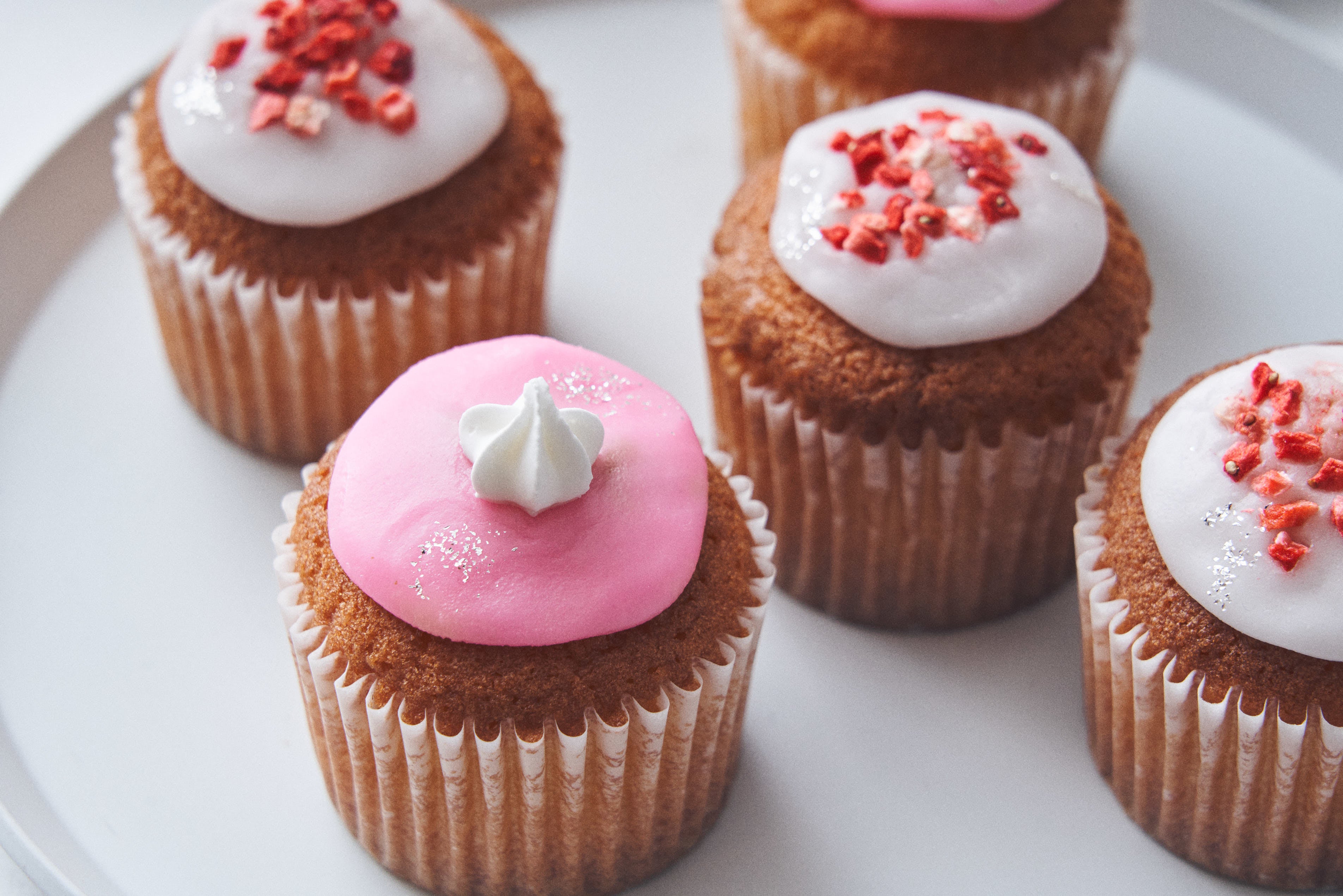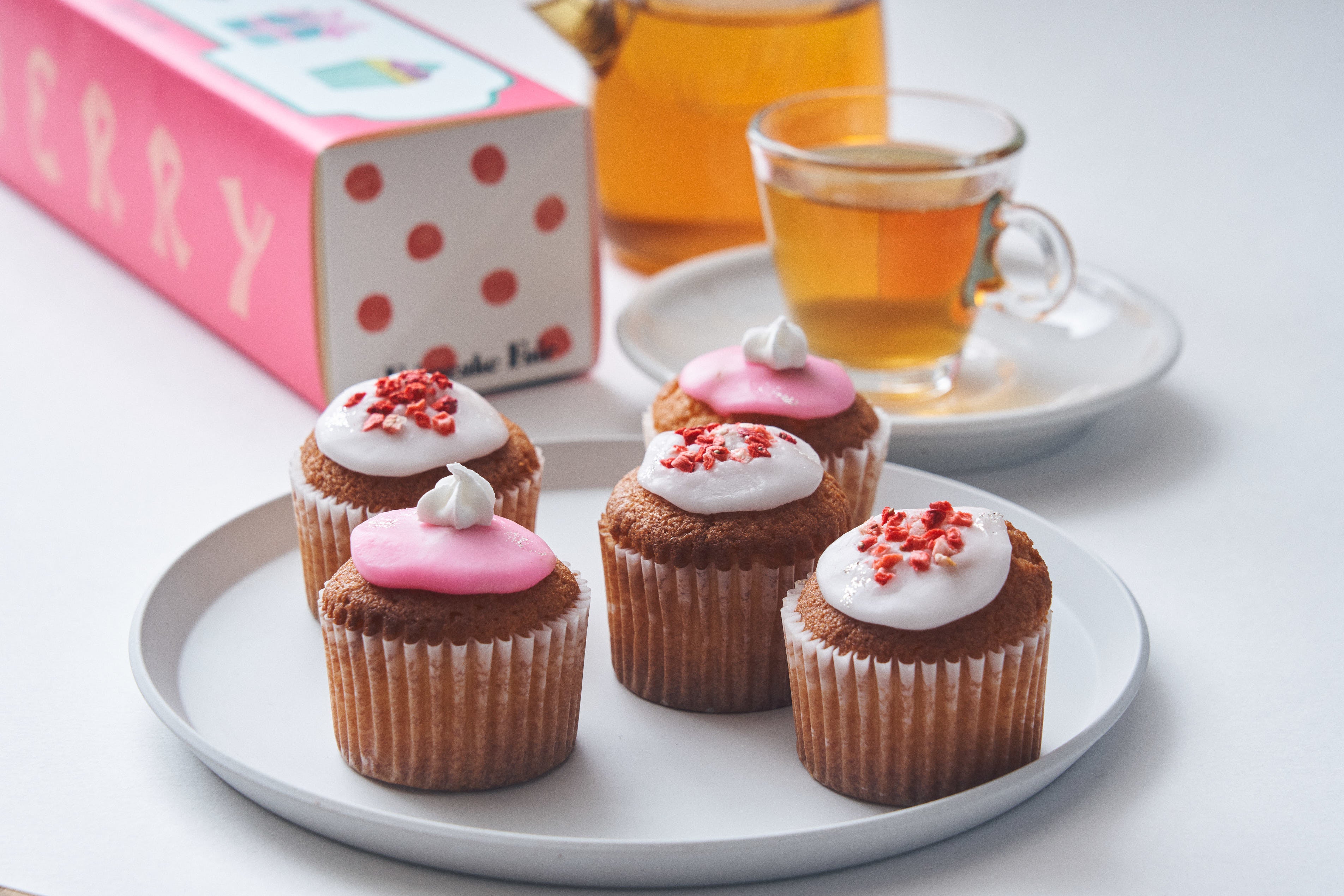 シンプルなアイシングデコレーションには、いちごのフリーズドライや絞ったメレンゲをトッピング。可憐なピンク色が春の彩りを感じさせてくれます。そのままはもちろん、レンジで少し温めるとカップケーキの中に入ったチョコレートがとろりと溶け、また違った味わいも楽しめます。