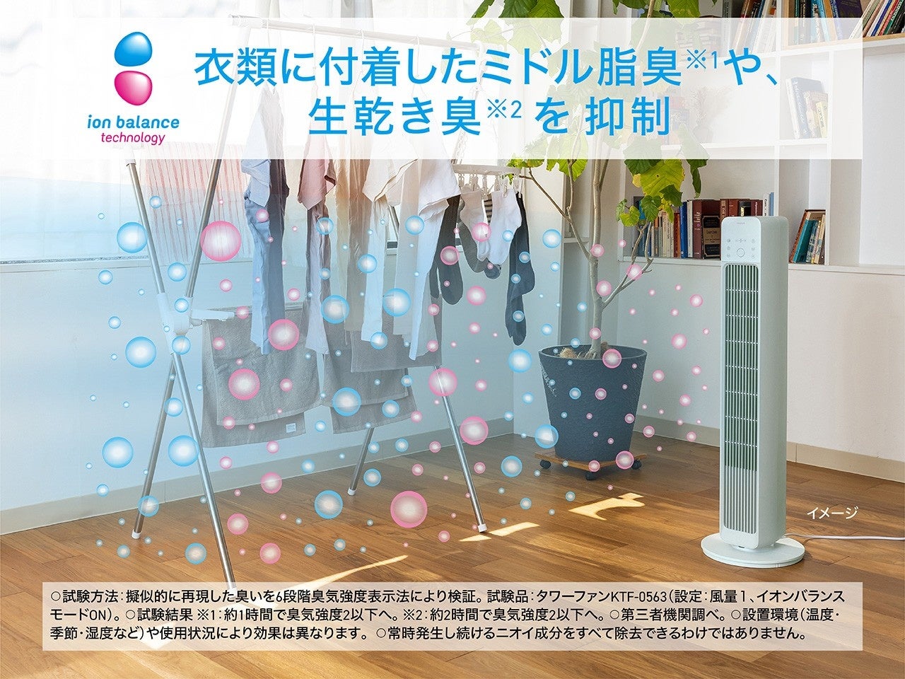 洗濯物の部屋干しにおすすめ!衣服に付着した臭いを抑制するイオンバランステクノロジー搭載の『タワーファン』新発売!