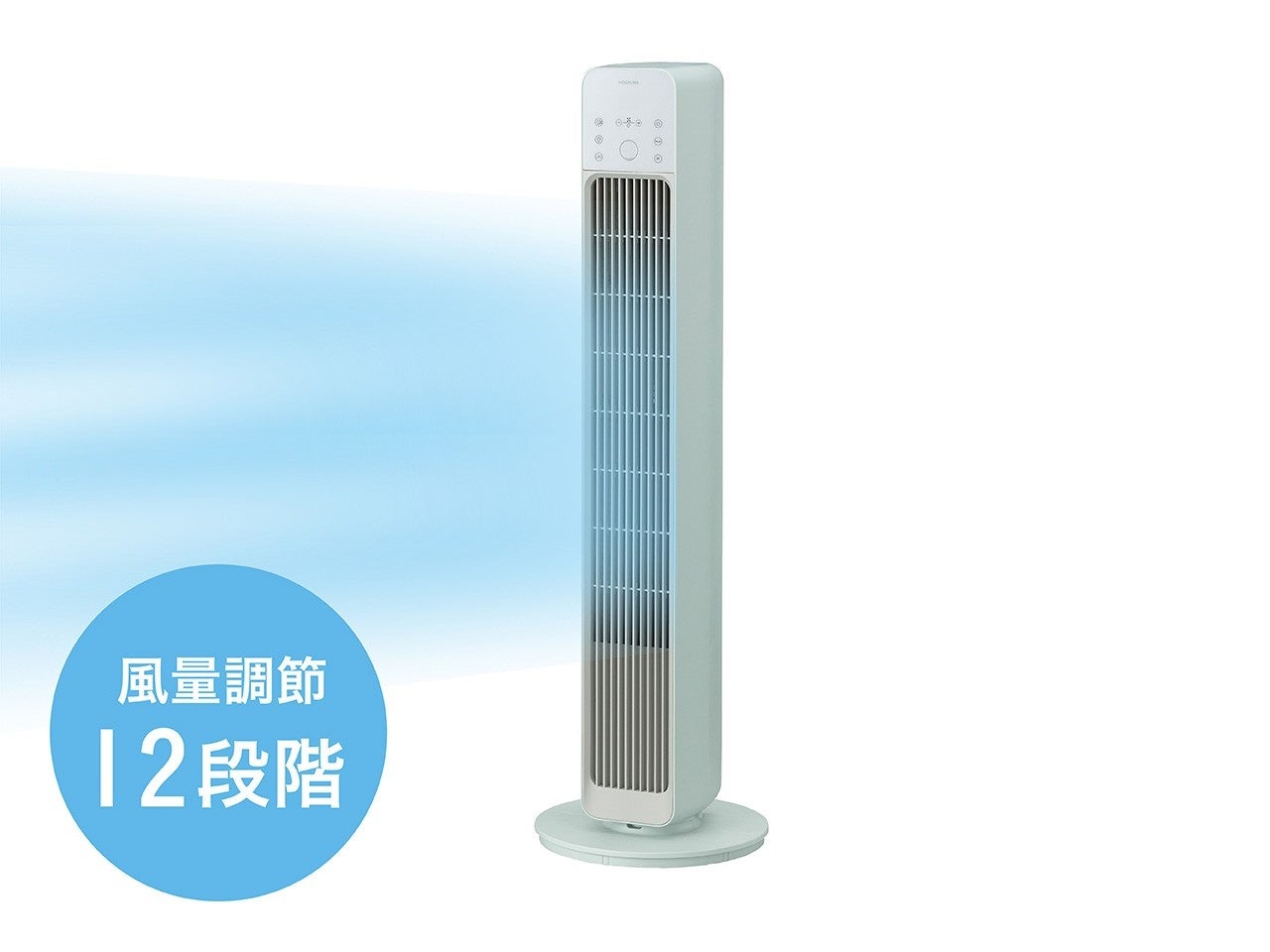 ・風量調節12段階。座っていても全身に風が届くハイタワー設計。