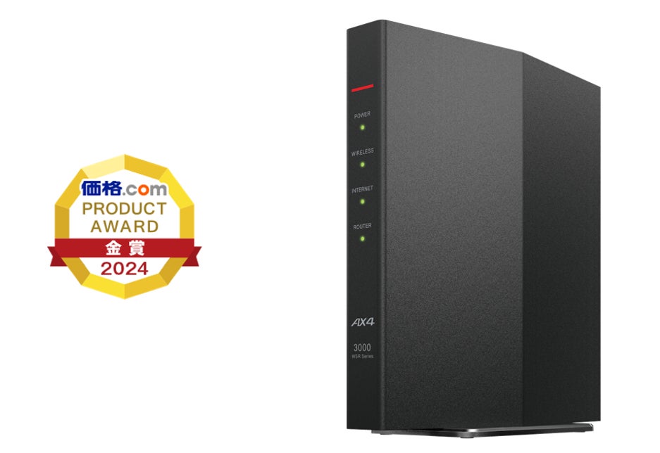 Wi-Fiルーター「WSR-3000AX4P-BK」が「価格.comプロダクトアワード2024」パソコン周辺機器部門無線LANルーター(Wi-Fiルーター)カテゴリで金賞を受賞