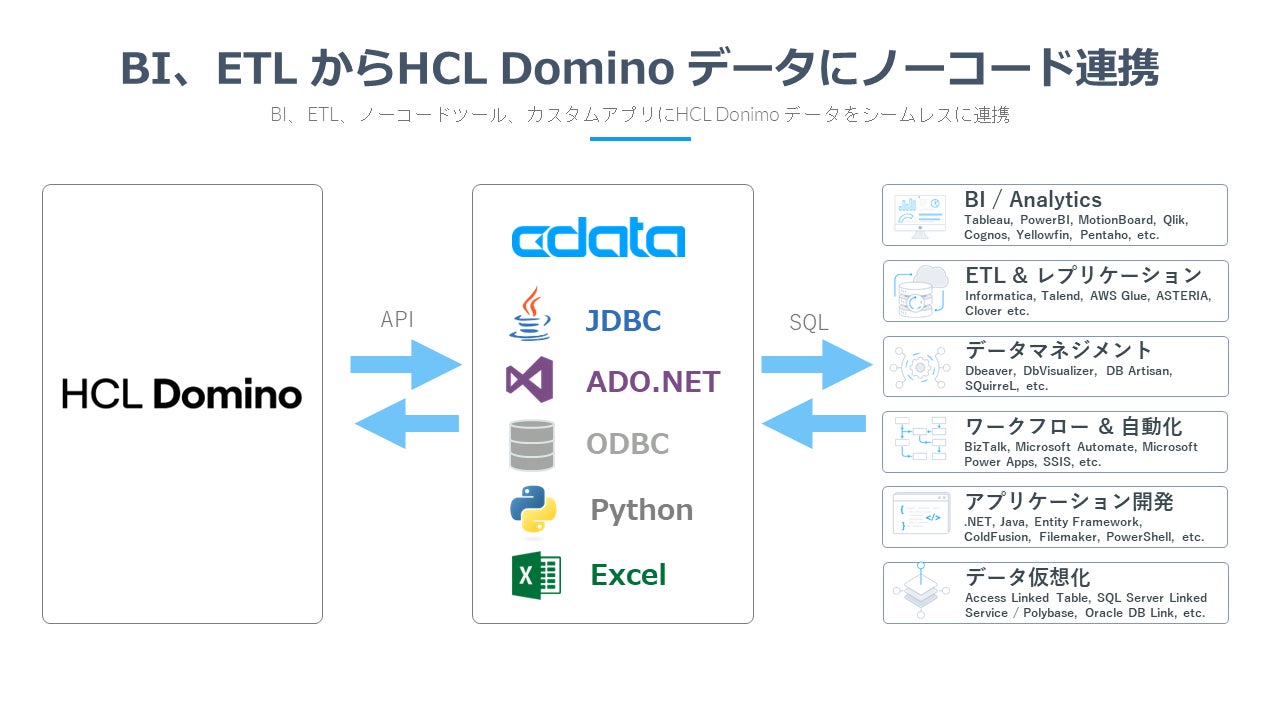Power BI、Tableau を含む各種BI ツールからHCL Domino データに連携して分析