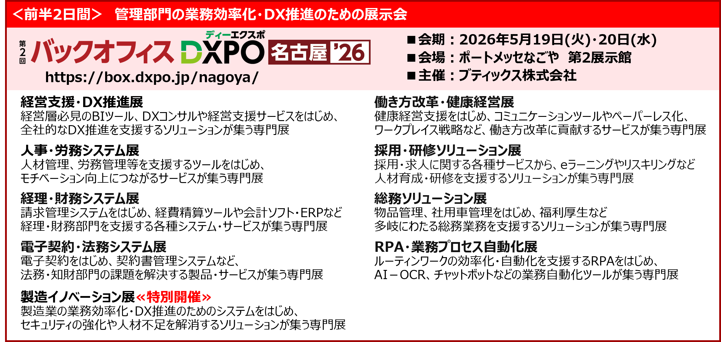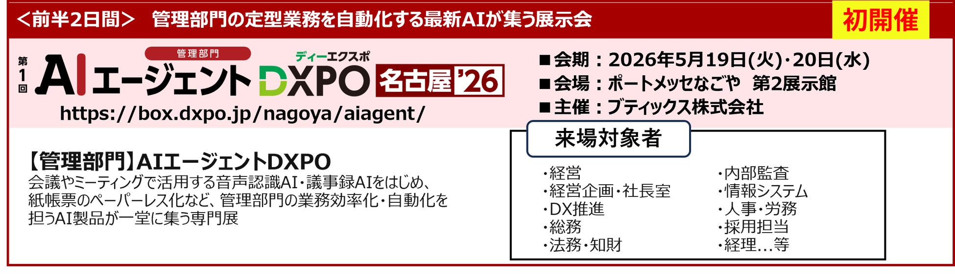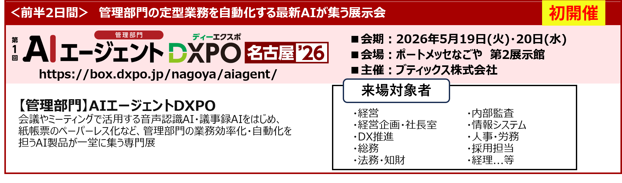 ■第1回 【管理部門】AIエージェントDXPO名古屋’26<初開催>