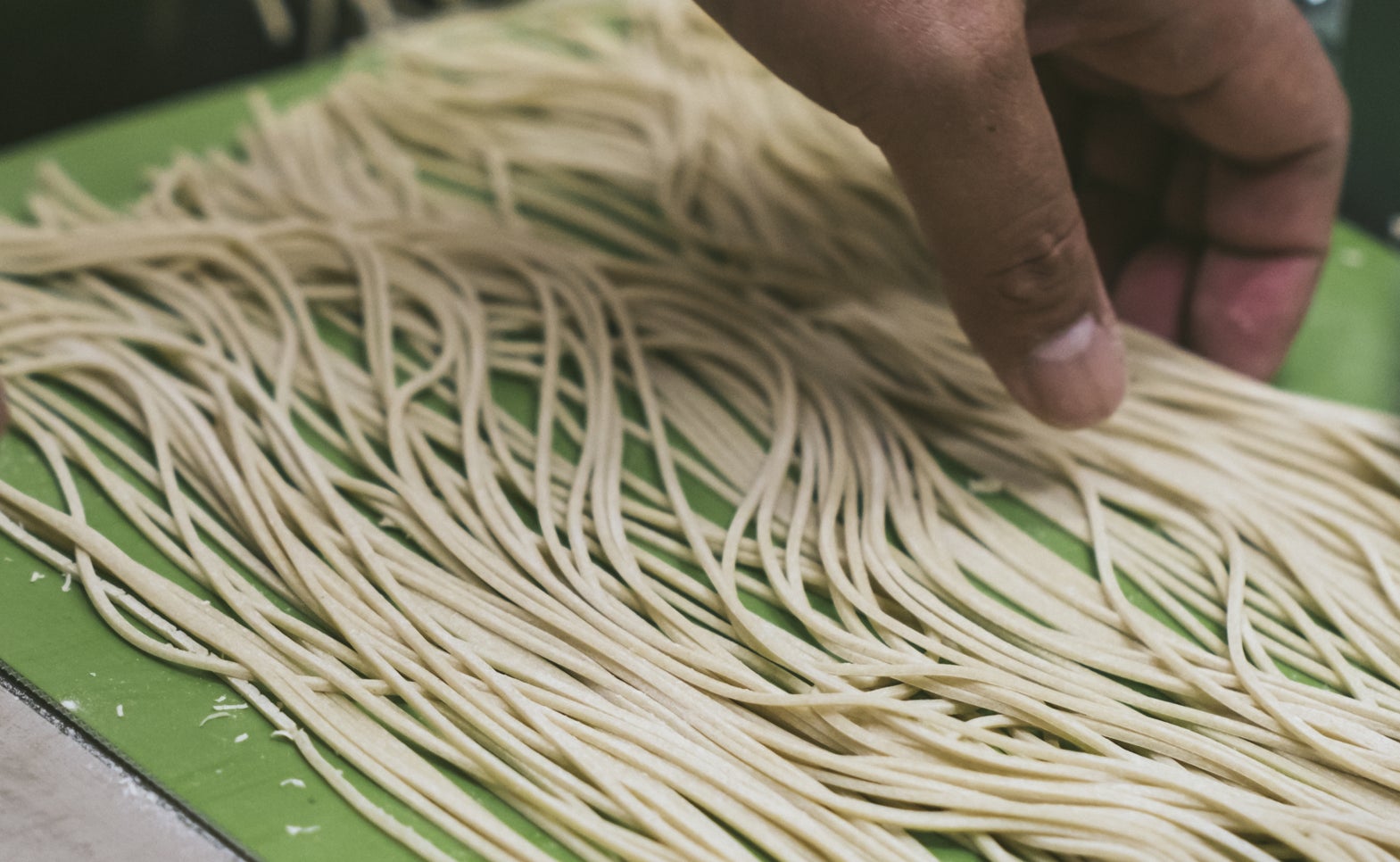 食材や料理との相性を研究し、絶妙な配合を追求したそば粉。最も美味しい状態で蕎麦を召し上がっていただきたく、毎日店内で製麺し、ご注文をいただいてから茹で上げます。打ちたて・茹でたての喉越しと歯応え、香りを存分にお楽しみください。