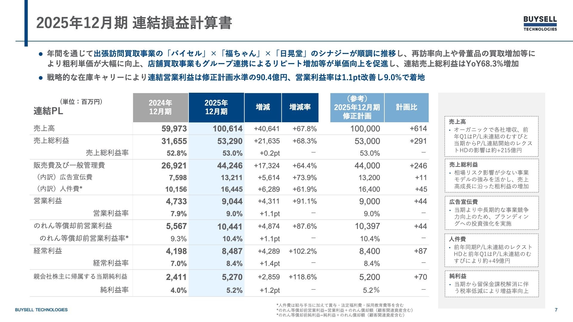 バイセル、連結売上高1006億円・営業利益90億円、好調な業績を受け中期経営計画を上方修正【2025年12月期 通期決算】