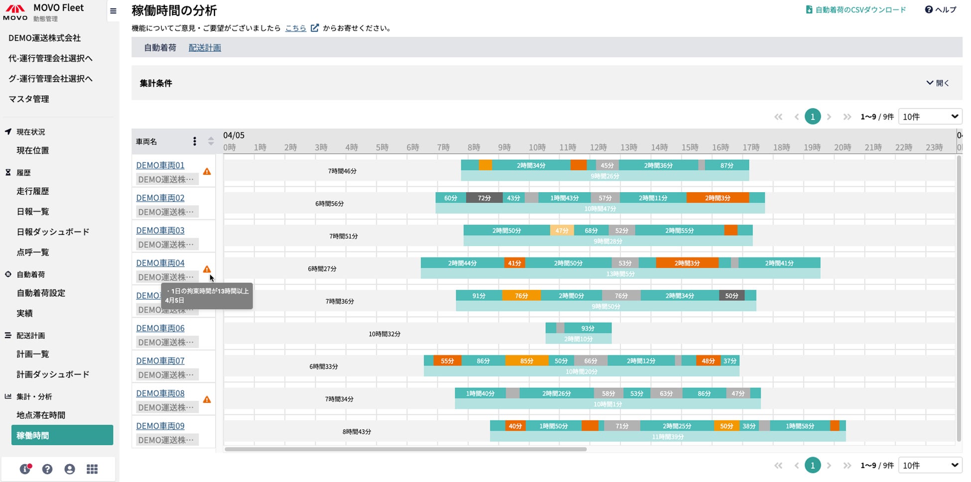 ドライバーごとに1台のMOVO端末を配備することで、各ドライバーの稼働状況を正確に集計することが可能です。