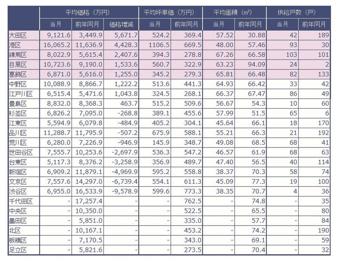 当社が調査した2023年10月の東京23区、行政区別分譲実績データ(速報値)です。