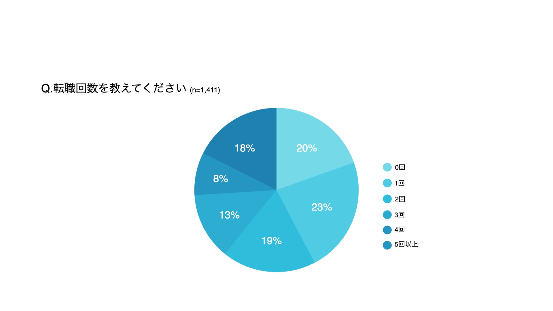 これまでの転職の回数を聞いたところ、「1回」と回答する人が23%と最多。80%の人が、一度は転職を経験したことがある一方で、2割は転職未経験という結果も。
