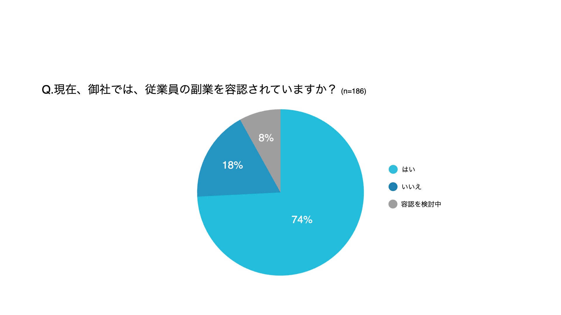 採用担当者に「現在、副業を容認しているか」聞いたところ、74%の企業が容認しているという結果に。