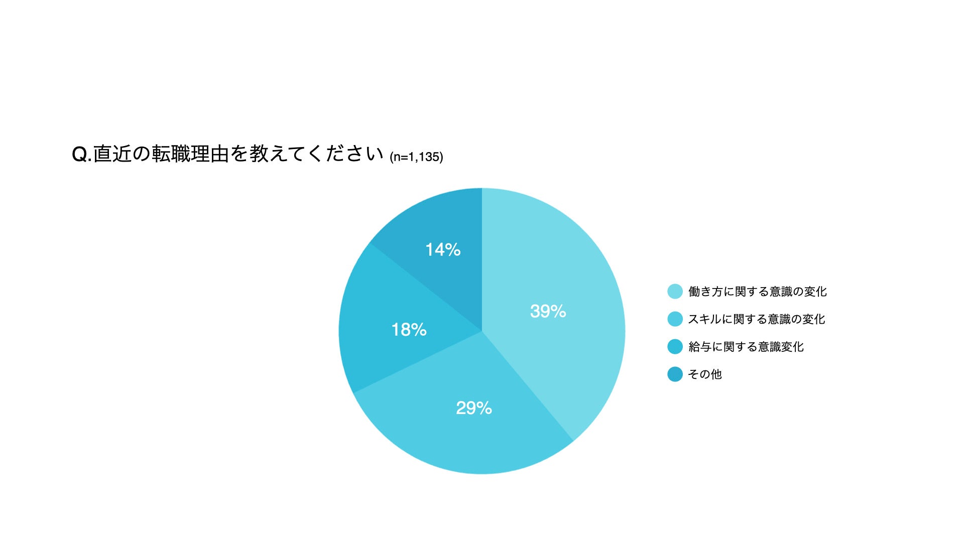 転職回数を「1回」以上と回答した転職経験がある人(1,135人)に、直近の転職理由を聞いたところ、「働き方に関する意識の変化」がトップに。