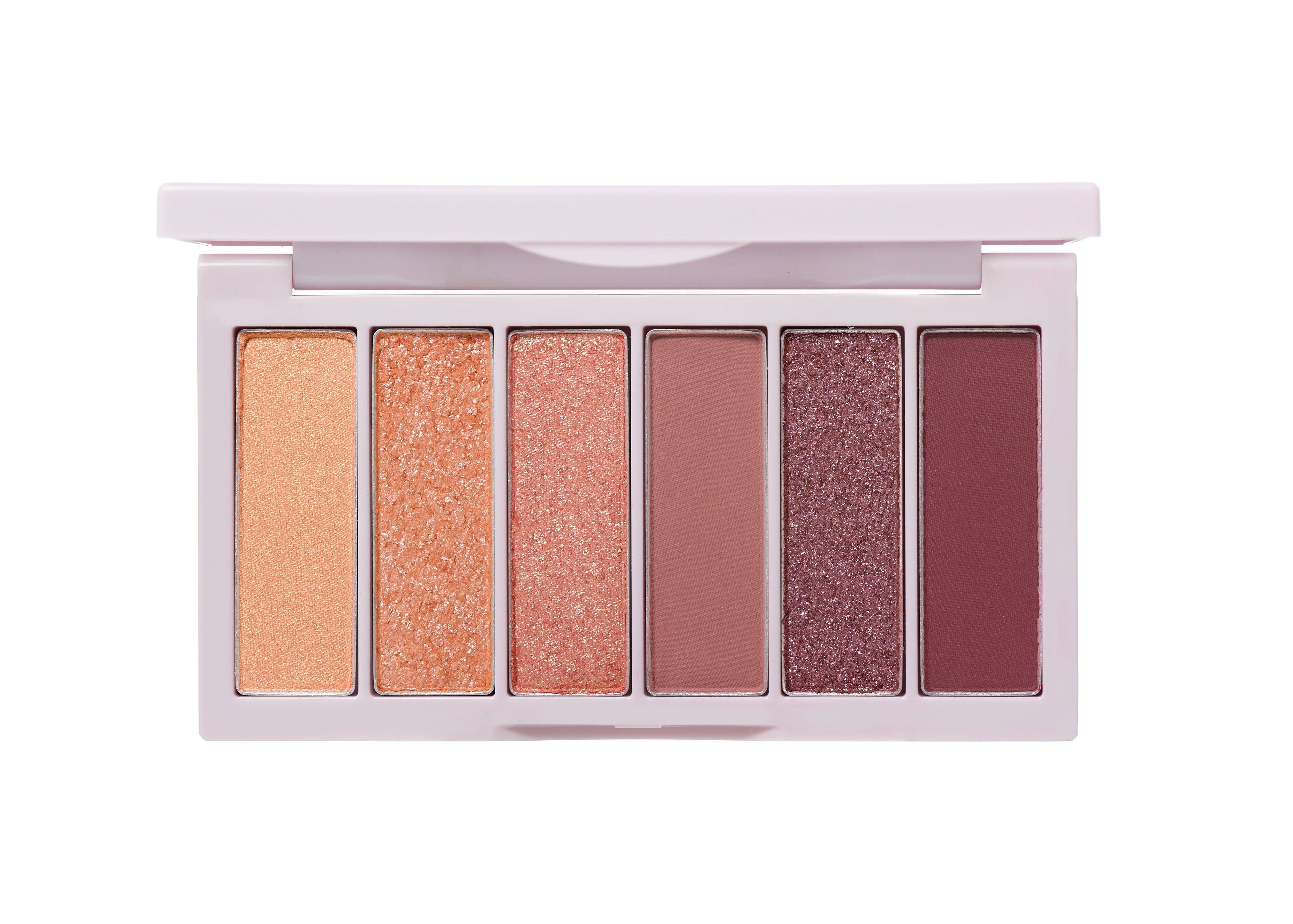 ロゼ&パープルを楽しめるアイシャドウパレットはどんな肌色にもなじむニュートラルトーン。