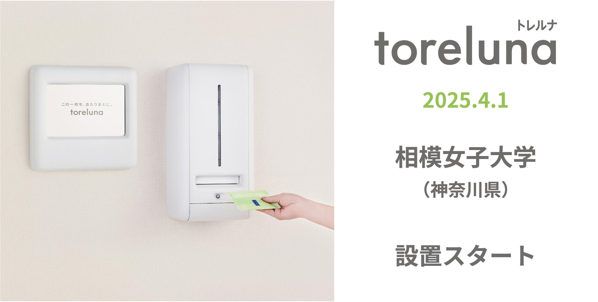 株式会社ネクイノ(大阪市北区、代表:石井 健一)は、トイレの個室で生理用ナプキンを常備し無料で提供するサービス「toreluna(トレルナ)」(以下 トレルナ)を、4月1日より相模女子大学(神奈川県相模原市)へ10台設置し、サービスの提供を開始いたしました。なお、本サービスの女子大学への本導入は、全国で初めての取り組みとなります。