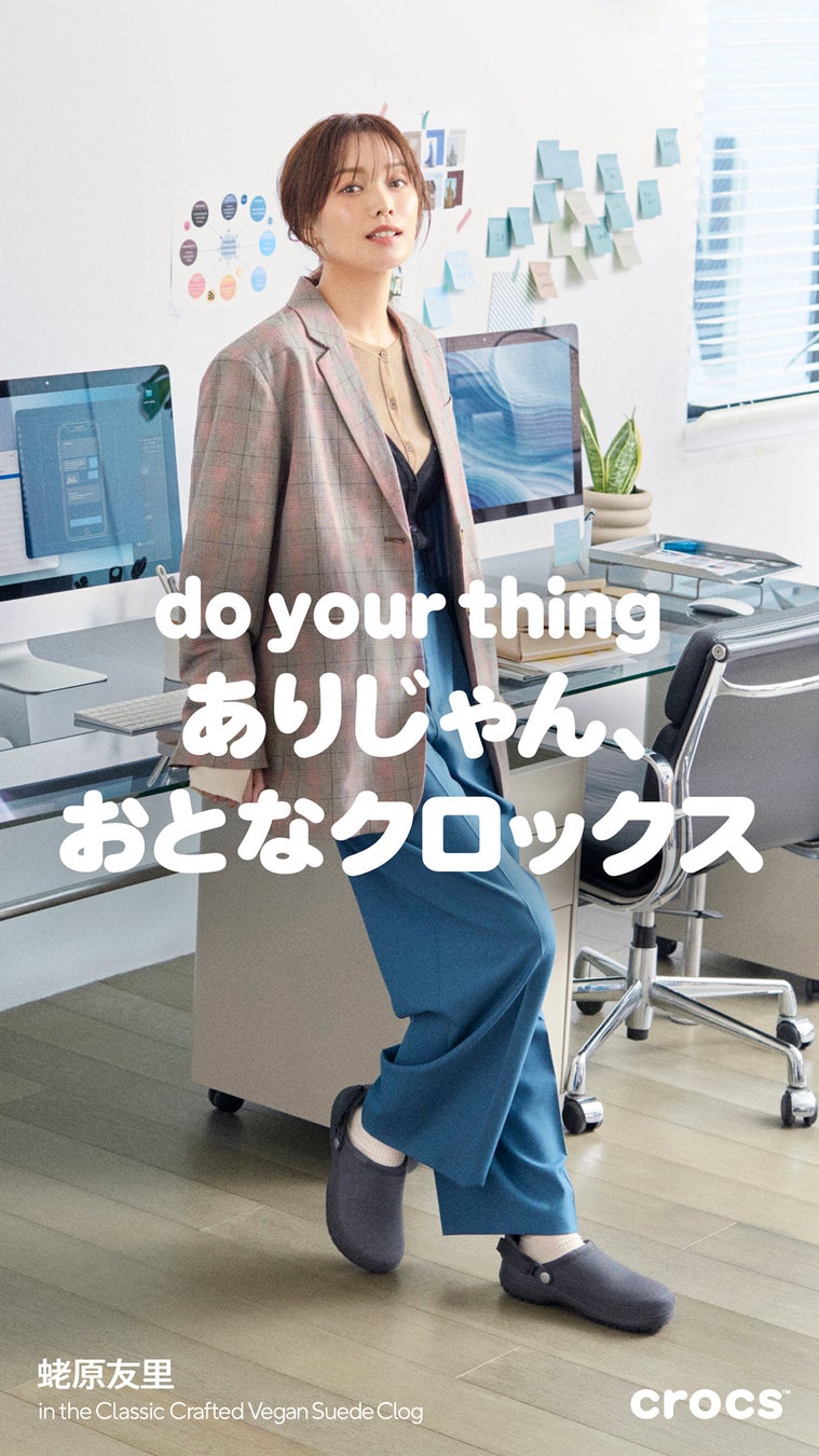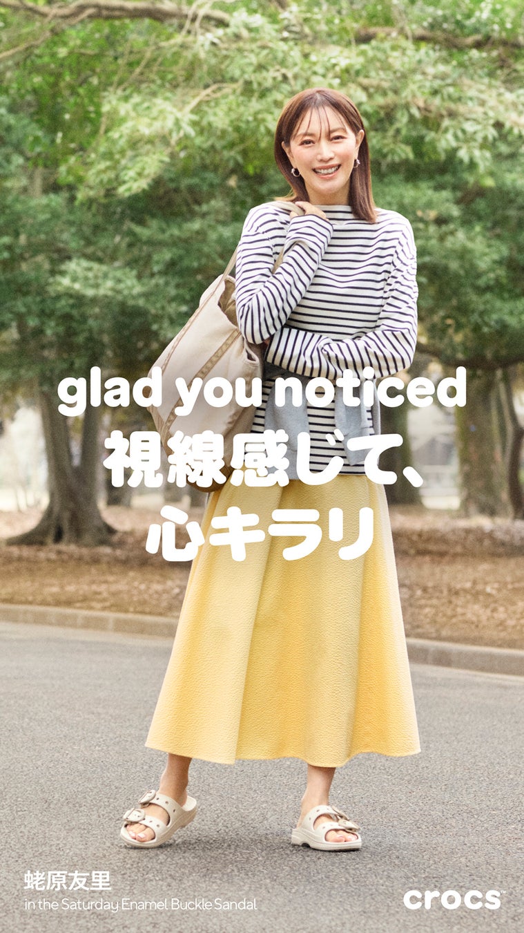 この春、クロックスはシンプルで洗練されたデザインと、快適な履き心地を兼ね備えた“大人のための提案”として「おとなクロックス」を展開。4月上旬から発売開始の「サタデー エナメル バックル サンダル」、素材感が特徴の「クラシック クラフテッド ヴィーガン スウェード クロッグ」の、大人ファッションに合う2つのアイテムを通じて、カジュアルからフォーマルまでフィットする新しいスタイルをお届けします。本キャンペーンには、同世代のファッションアイコンである蛯原友里さんを起用。等身大で自分らしさを楽しむ蛯原さんの魅力を通じて、“大人の足元”にぴったりなクロックスの新たな一面を発信します。