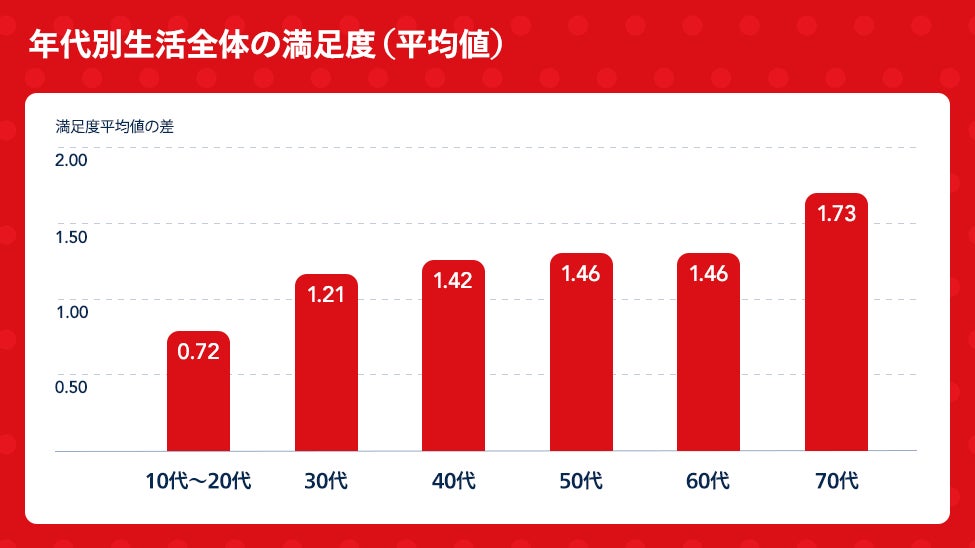 さらに、満足度の差は年齢と共に拡大する傾向が見られており、ライフステージが進めば進むほど、「旅」と「投資運用」のバランスが、幸福度に大きく寄与していると考えられます。