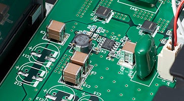 電源生成基板には大電流、高リップル電圧に対応した低ESRの大容量MLCC(積層セラミックコンデンサ)を採用。電解コンデンサのような容量抜けがなく、弱点である「鳴き」も、2個のコンデンサを180°反転させ重ね合わせることで抑えています。