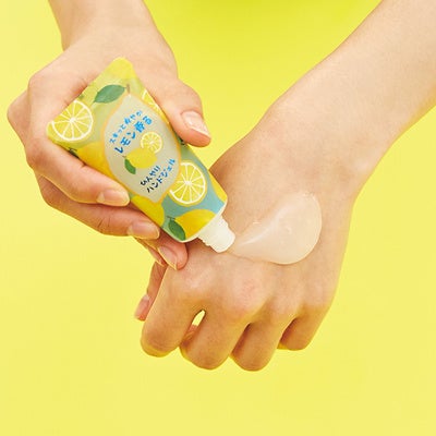 どこか懐かしいレモン柄のビニールポーチに外出先で使いやすいミニサイズのハンドソープとひんやりハンドジェルがセットになりました。すっきり洗って、さっぱり保湿を。