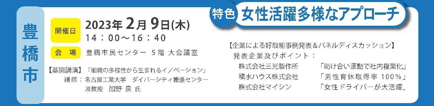2023年2月9日(木)には、女性の人材の確保につなげたい企業のためのセミナーを愛知県と共同で開催。