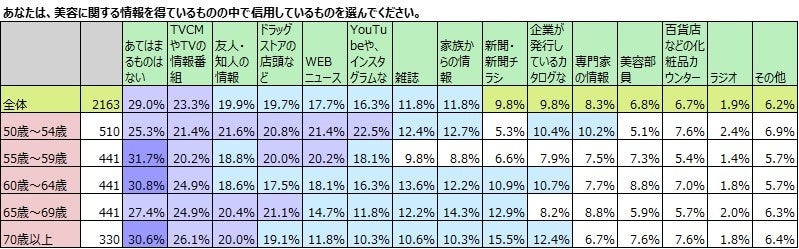 美容に興味がある女性が多いにも関わらず、信用できる情報が少ないと感じられている女性が多いことも反省すべき点です。美容に関しては、ますますエイジレスな考え方が進むであろうと思われますが、高齢女性に対しても、より、個性を尊重し、「高齢者はこうだろう」という思い込みをなくしていくことが大切だと考えます。