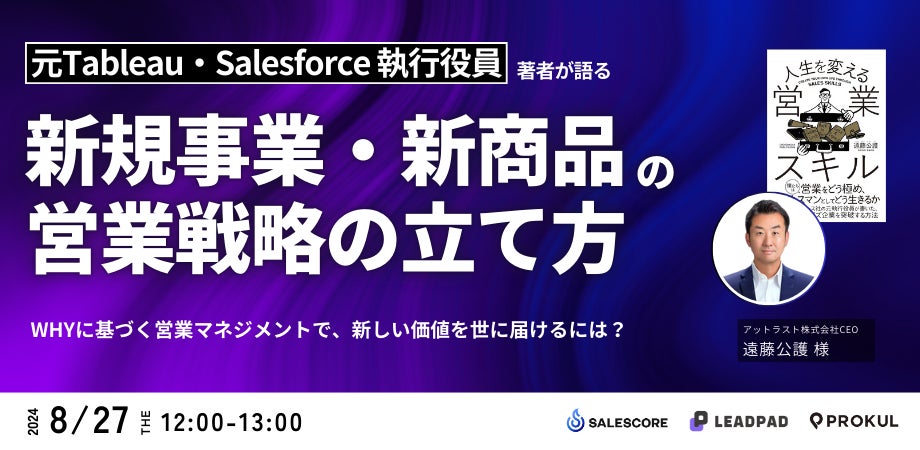 遠藤公護氏をお招きし『新規事業・新商品の営業戦略の立て方~元Tableau・Salesforce執行役員が語る、WHYに基づく営業マネジメントで、新しい価値を世に届けるには?~』を開催します