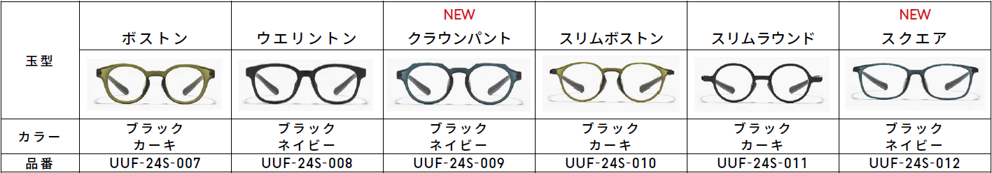スクエアとクラウンパントが加わった、クラシックな印象の6型。フレームの外側はマット、肌側はツヤありのこだわりの質感。