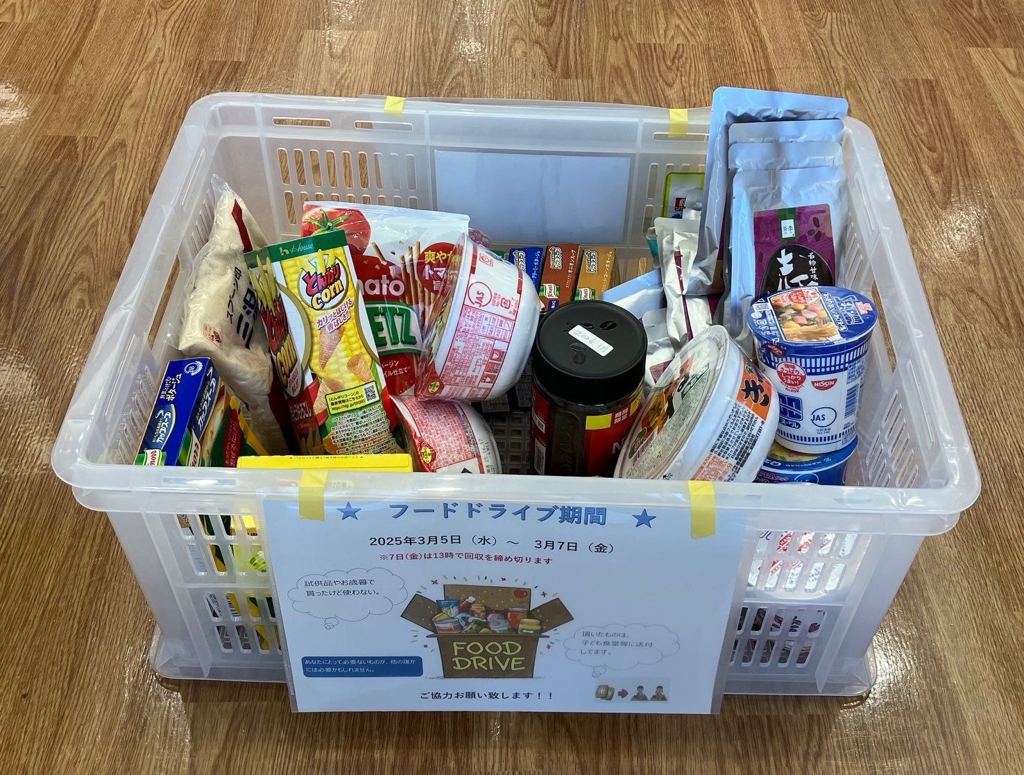「フードドライブ活動」とは、家庭で余っている食品を集め、フードバンク団体を通じて必要とされる子ども食堂や福祉施設などに寄付する取り組みです。