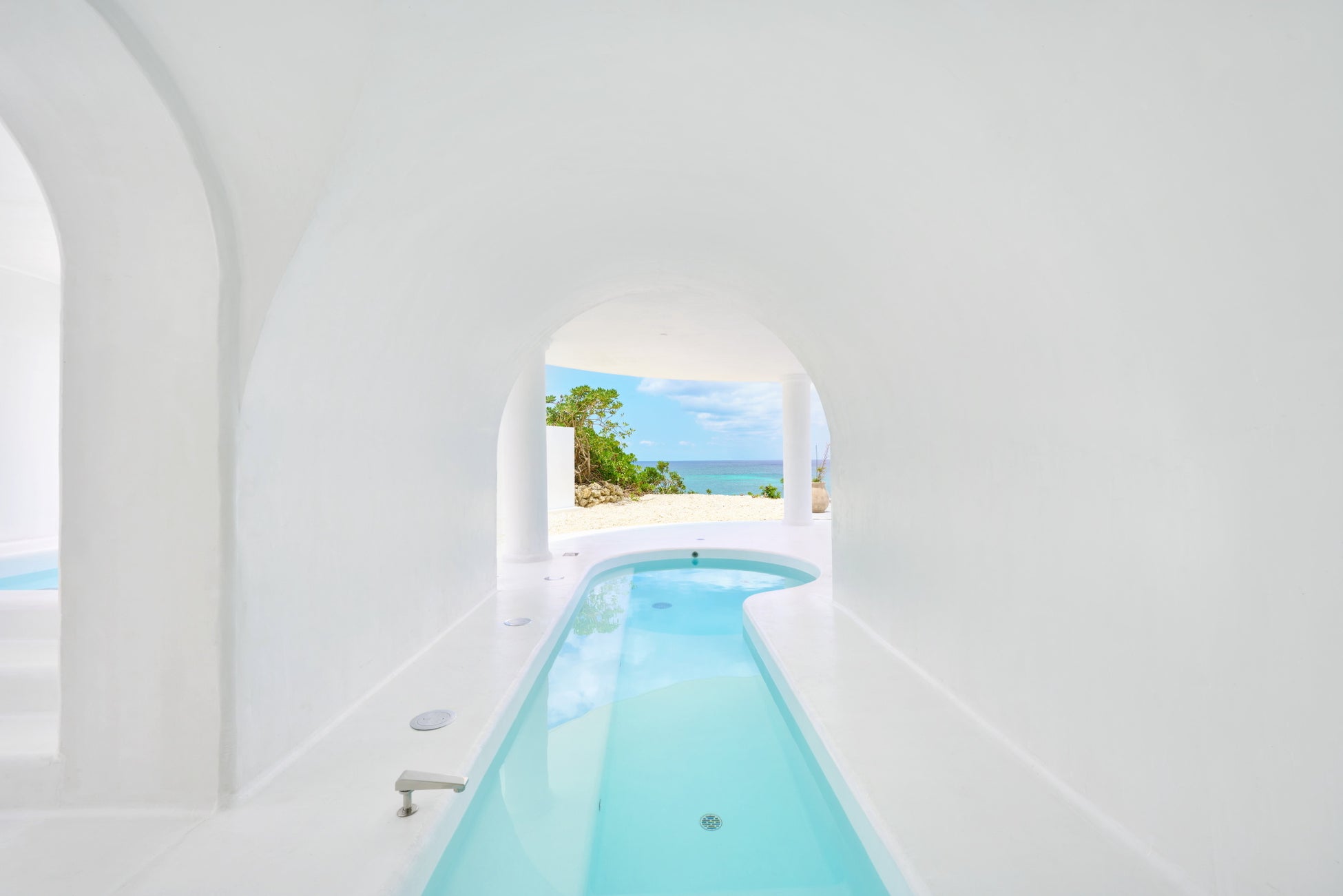 「プリシアスイートヴィラ」は、プライベートな空間をお楽しみいただける専用プールやサウナ、屋上サンセットダイニングなどの設備を備えているほか、広々としたリビングと開放感のあるパウ ダールームやゆったりとしたベッドルームなど、室内は白を基調とした温かみのある雰囲気が特徴です。1日1組限定のラグジュアリーな空間で特別な旅をお楽しみください。