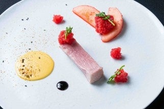 「RESTAURANT TOYO」は、季節の新鮮な食材と素材の旨みを最大限に活かすことにこだわり、和食の要素を取り入れたフレンチをカウンターで提供する人気店。メイン料理に「青森アップルポーク」を使った会員限定メニューを2025年3月15日までの期間限定で提供します。