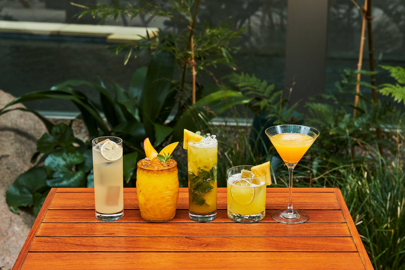 フリーフロー付きプランには、オーク ドア バーのバーテンダーが考案した、マンゴーやパイナップル、パッションフルーツなどの旬のトロピカルフルーツを使用したオリジナルカクテル5種も登場いたします。マイタイには完熟したマンゴーを、マティーニには甘酸っぱいパッションフルーツのほかパイナップルジュースを合わせます。そのほか、グレープフルーツジュースを使用したテキーラベースのカクテルパロマや、パイナップルとライムを合わせたマタドール、パイナップルのモヒートなど。