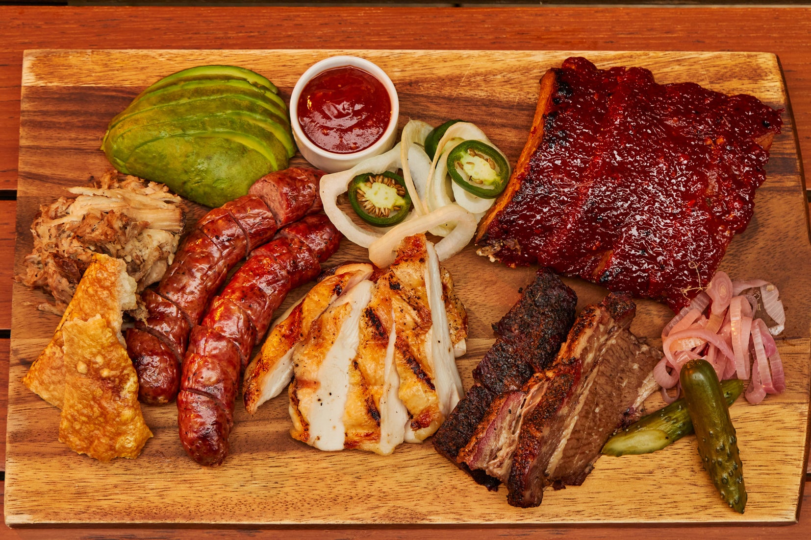 国産牛から豚肉、ソーセージ、チキンまで5種類のバーベキューがご堪能いただけるシェアプレートや