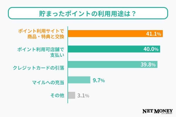 上位3つの回答数はそれぞれ40%前後と僅差であり、ポイントの使い道は人それぞれ異なる一方で、どの選択肢も多くの支持を得ているようです。