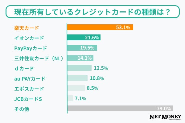 1位の楽天カードは2位のイオンカードと2倍以上の差をつけており、高い人気を誇るクレジットカードだとわかりました。