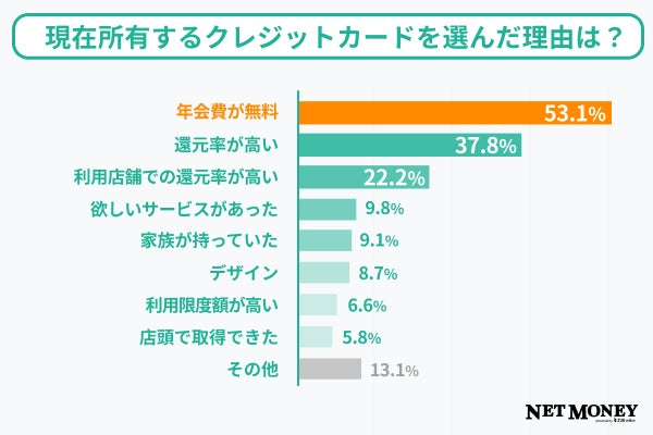 【質問2 】【質問3 】でも年会費無料のクレジットカードが上位にランクインしており、年会費はクレジットカードを選ぶ際に重要なポイントだとわかりました。
