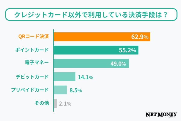 クレジットカード以外にも、多様なキャッシュレス決済手段が広く利用されていることがわかります。