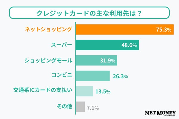 クレジットカードは、ネットショッピングから日常の買い物まで幅広く利用されていることがわかります。