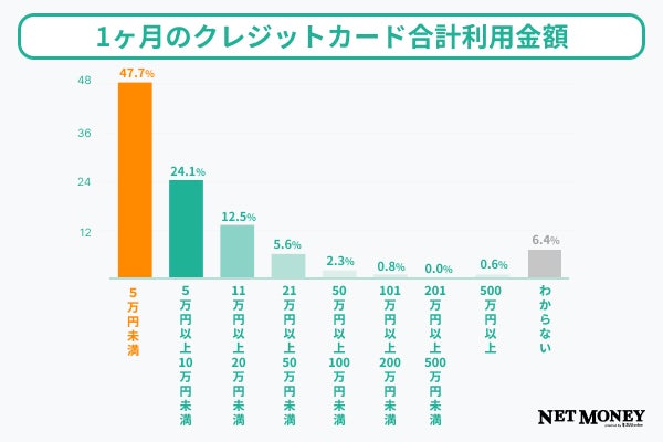 カードの利用額は、半数近くの人が月5万円未満にとどまっていることがわかりました。これは、一人暮らしの平均的な生活費が月10万円を超えることを考えると、やや消極的といえます。