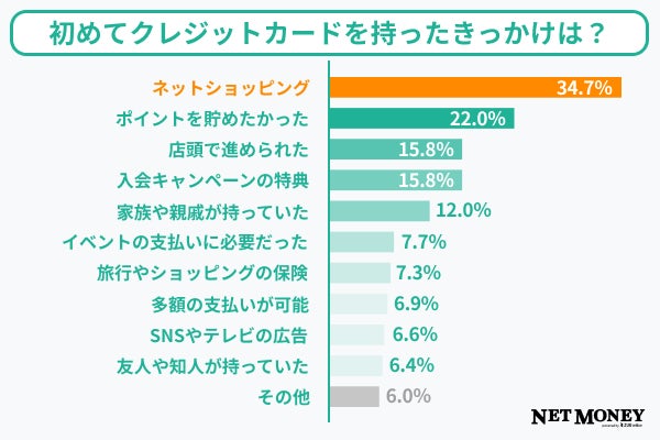 初めてクレジットカードを持ったきっかけはネットショッピングが最も多いとわかりました。
