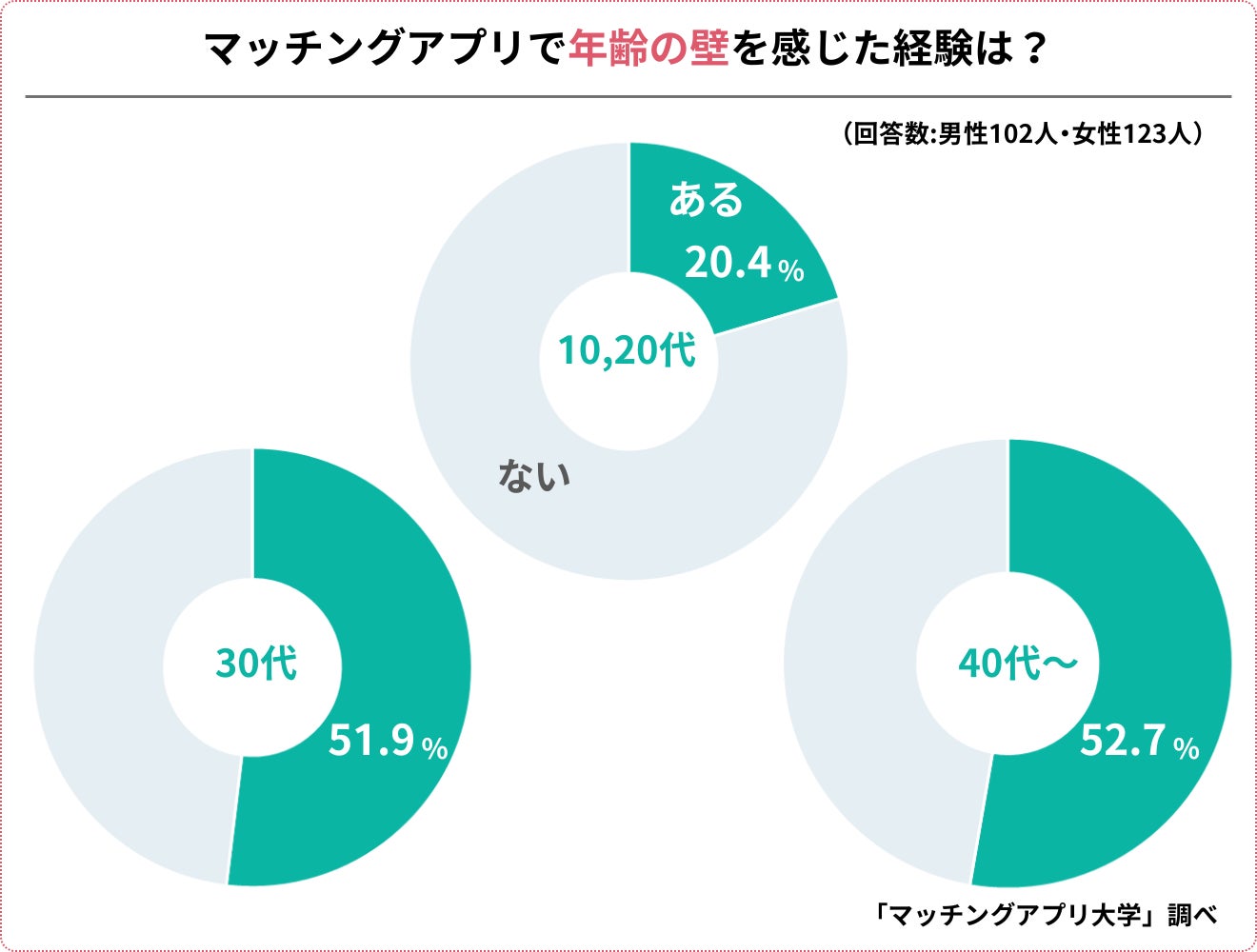 マッチングアプリ利用時に「年齢の壁」を感じた割合(年代別)