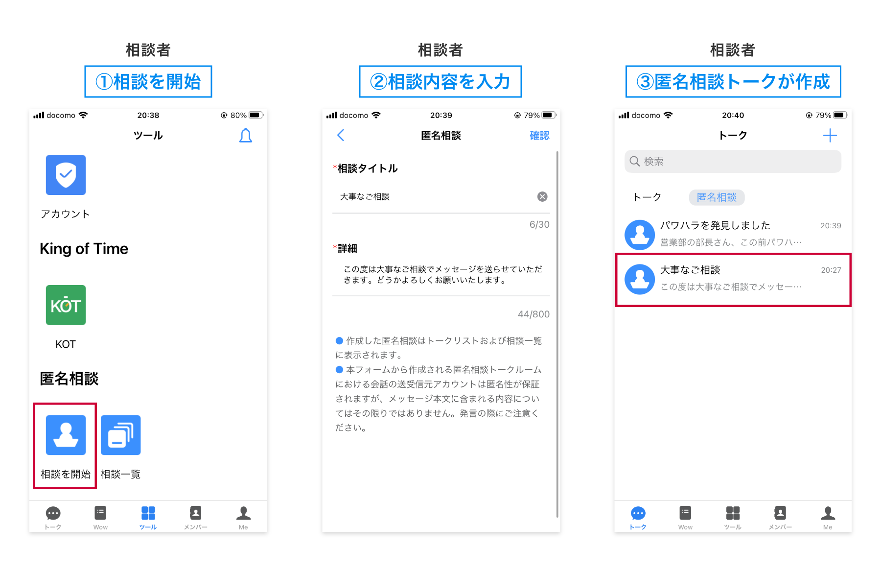 ・匿名相談を受け付け可能なWowTalkアカウントは、1つのみとなります。