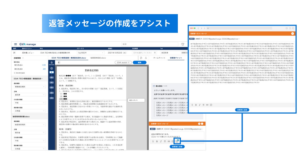 マターマネジメントシステム「GVA manage」が生成AIを活用したメッセージの作成アシスト機能β版をリリース
