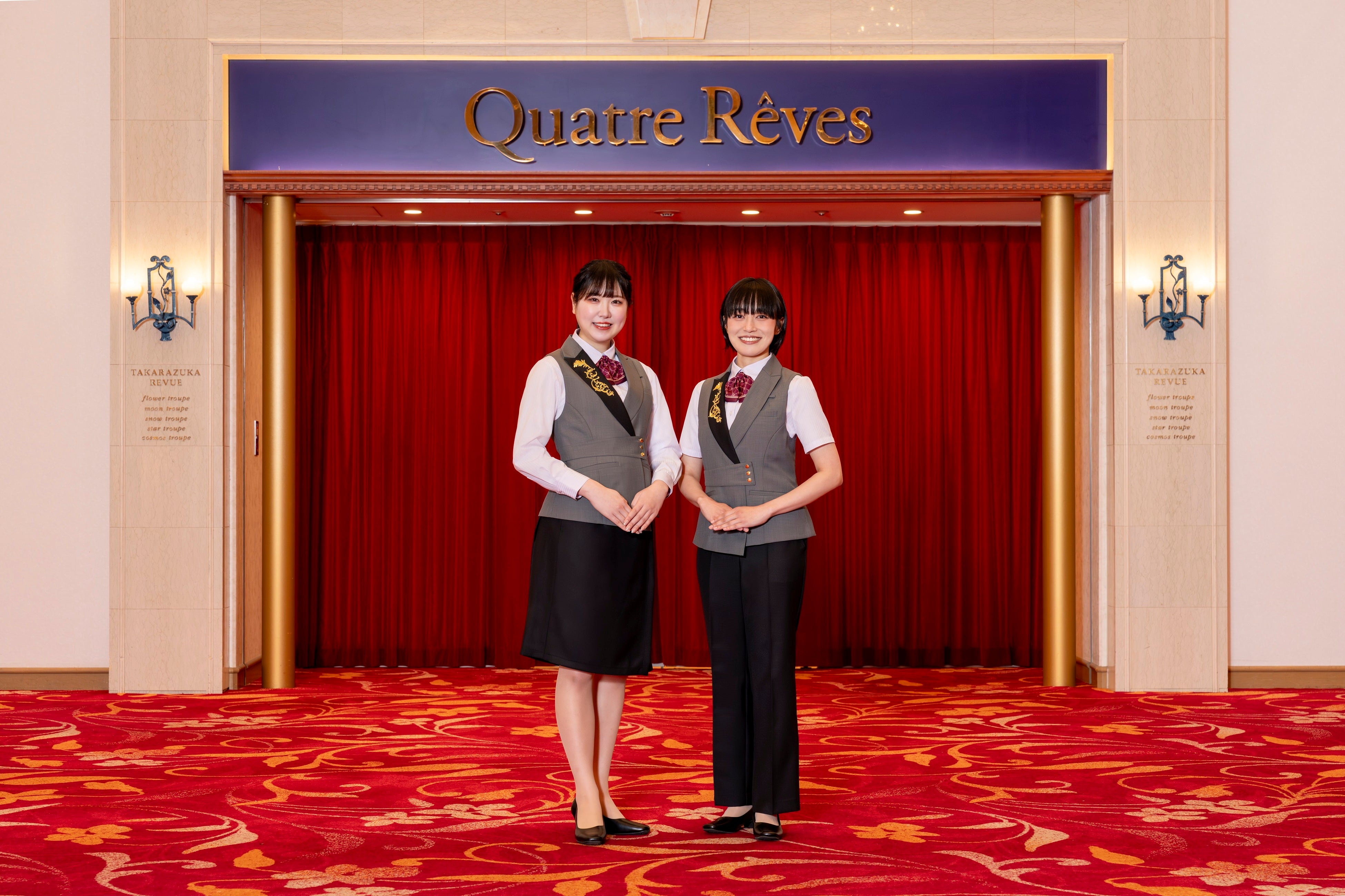 デザイン決定の過程では、「キャトルレーヴ」のスタッフが参画するプロジェクトを立ち上げ、「着たい」「動きやすい」「自分たちらしい」と感じられる一着を目指して検討を重ねました。こうした現場の声を大切にデザインに落としこむことで、日々の接客業務に寄り添う機能性を備えながらも、舞台の気品を体現する特別な装いを完成いたしました。