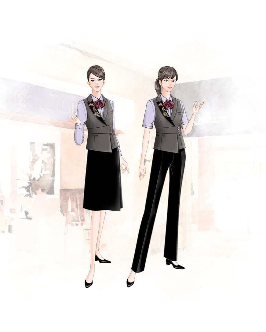 軽量素材を用いることで、堅苦しさを感じさせない軽やかな着心地を実現。長時間の接客業務にも配慮した設計です。