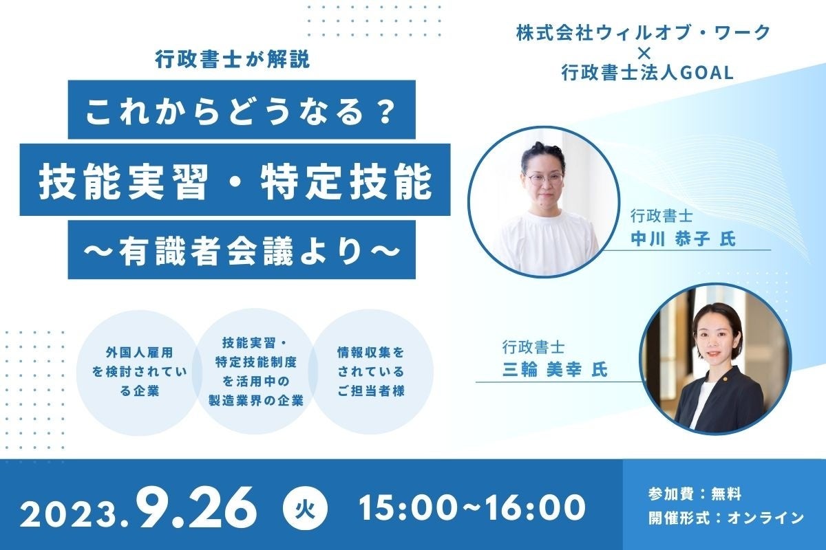 本セミナーでは、GOAL社の行政書士をお招きし、日本政府が外国人雇用のあり方をどのように捉えているのか、そして技能実習・特定技能それぞれの制度が担うべき目的と展望について、2023年7月31日に実施された『技能実習制度及び特定技能制度の在り方に関する有識者会議(第10回)』の内容とGOAL社が独自に入手した情報をもとに紹介します。