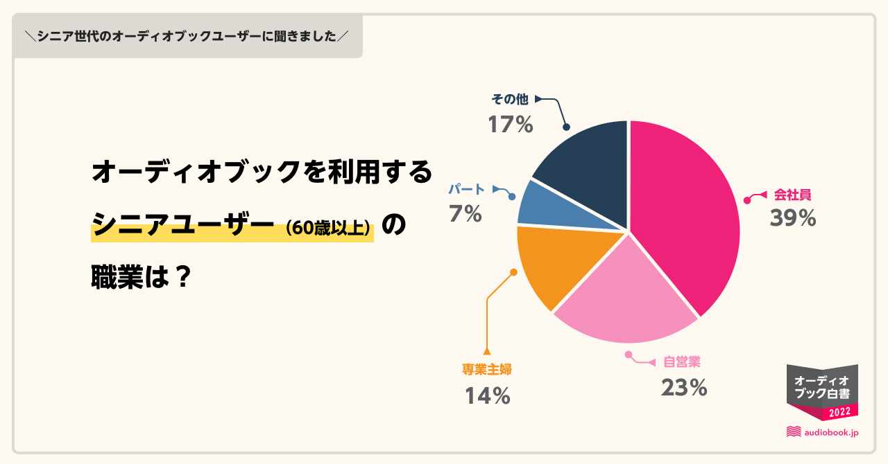 - 1、オーディオブックを利用するシニアユーザー(60歳以上)の7割が働くシニア